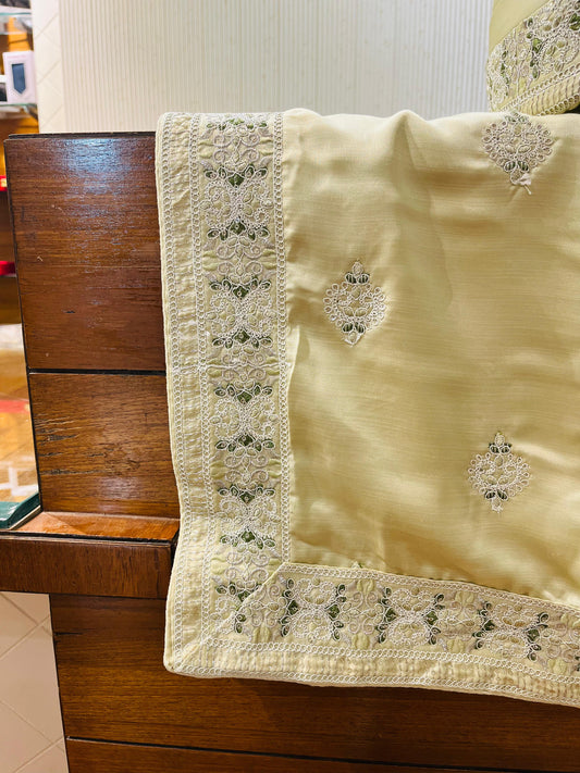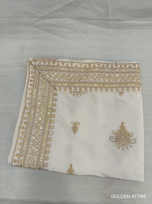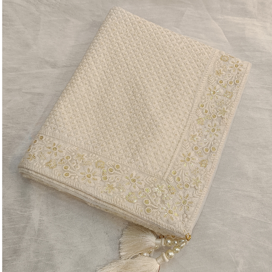 Elegant Ivory Art Silk Groom Shawl with Golden Lace & Thread Embroidery