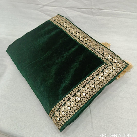 Elegant Green Velvet Groom Turban & Shawl Set – Lightweight & Adjustable for Perfect Fit (Shawl 65x250 cm)