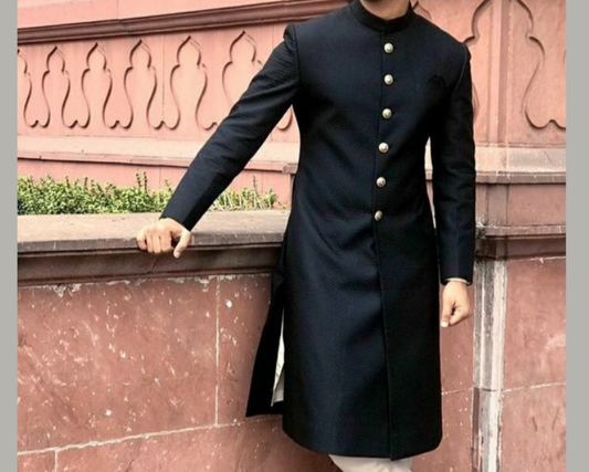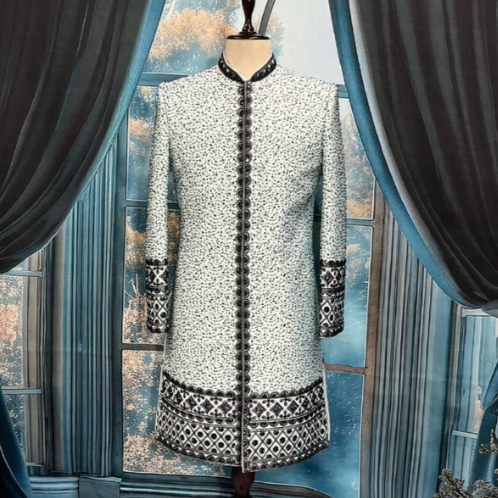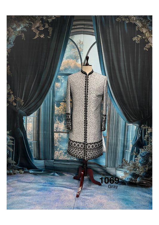 Grey Sherwani with Black Zardozi Work | Indian Groom Indo-Western