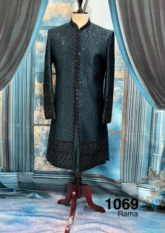 Rama Green Sherwani, Black Zardozi Embroidered Indo-Western Groom Outfit