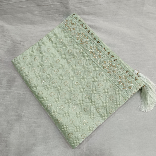 Elegant Sage Green Silk Groom Turban Shawl with All-Over Thread Embroidery – Lightweight & Adjustable (Shawl 65x250 cm)