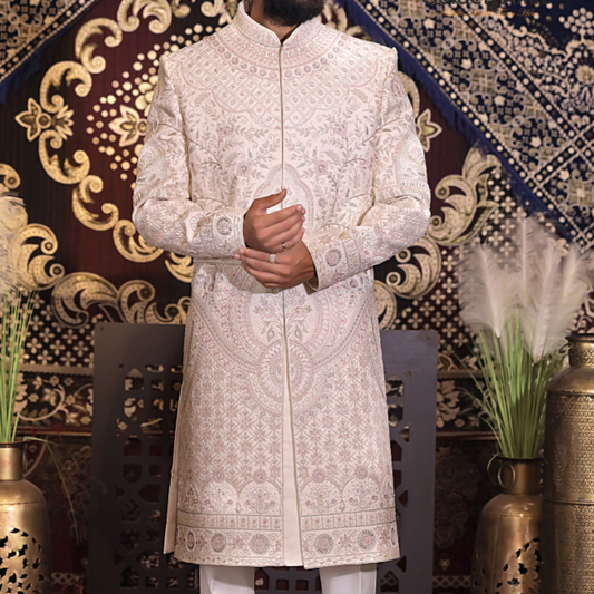 Luxury Ivory Groom Sherwani, Traditional Indian Sherwani Wedding Outfit