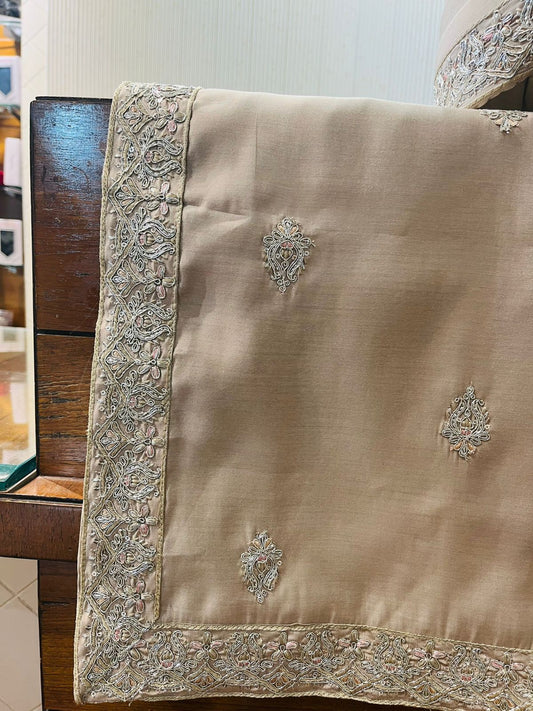 Rose Gold Dulha Sherwani Art Silk w/ Zardozi & Thread Embroidery
