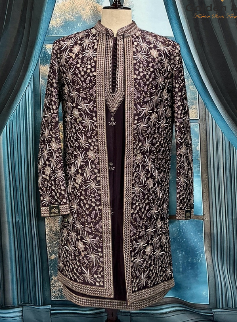 Grey Sherwani with Black Zardozi Work | Indian Groom Indo-Western