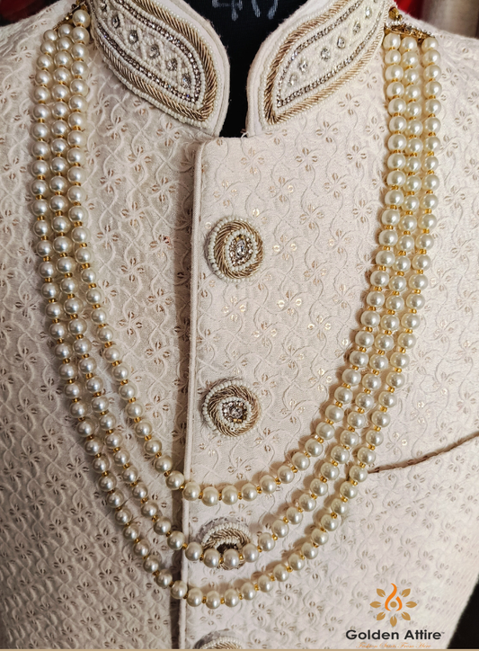 Ivory Maharaja Necklace, 3-Layer Groom Pearl Mala