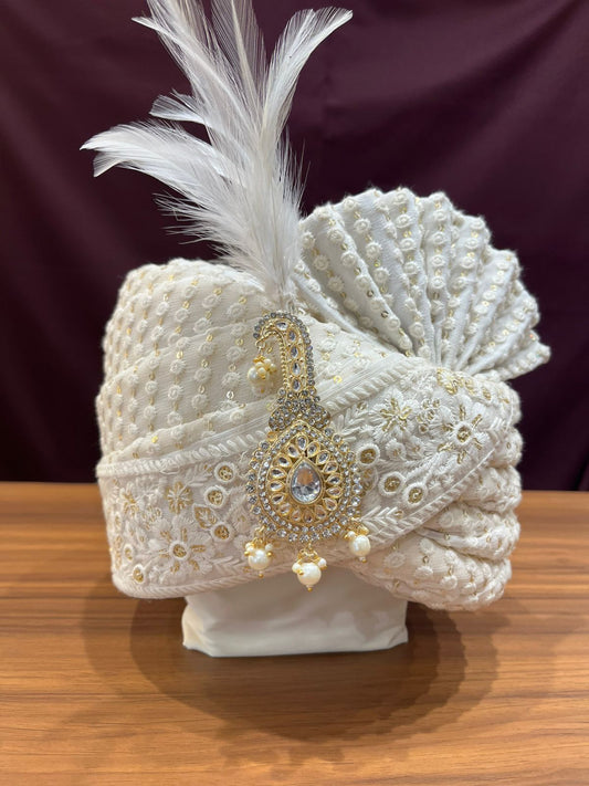 Golden Attire Beige Kundan Kalangi & Kalgi Set | Premium Stone Turban Pin | Sikh Groom Accessory