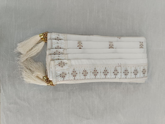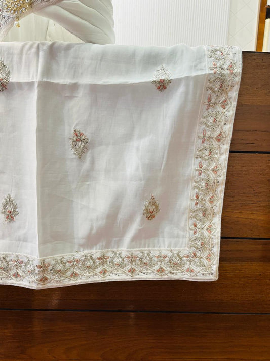 Off-White Embroidered Groom Safa with Shawl, Red Booti Sherwani Turban