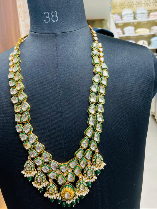Regal Ivory & Green Stone Maharaja Necklace for Groom