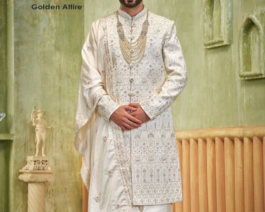 Warm White Groom Sherwani Zardozi & Thread Embroidery Customizable Sherwani