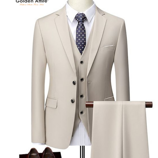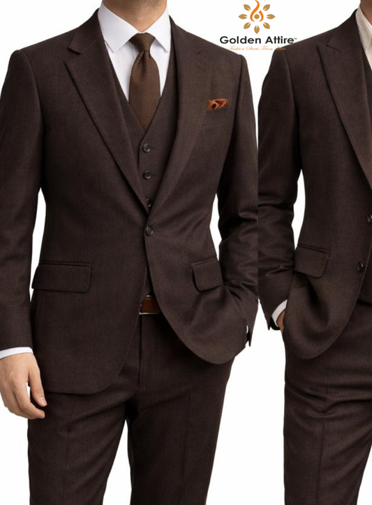Golden Attire Men's Brown Three-Piece Comfortable Groom Suit | Customizable & Free Worldwide Shipping
