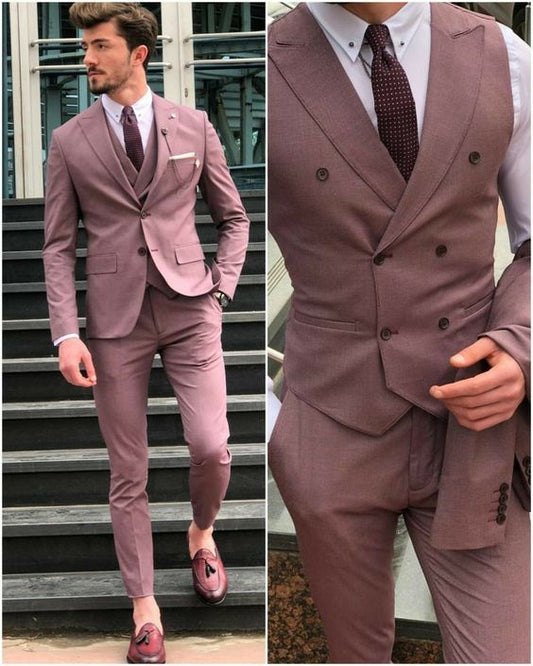 Custom Dusty Rose Groom Suit, Two-Piece Set Bespoke Suits