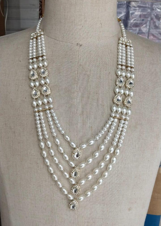 Ivory Pearl Groom Necklace | 4-Layer Kantha Mala with Stone Detailing | Sherwani Jewelry | Golden Attire