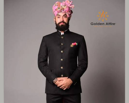 Black Bandhgala Suit , Elegant Jodhpuri Suits Custom Fit