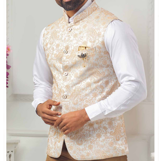 Nehru Jacket for Men, Beige Modi Jacket,