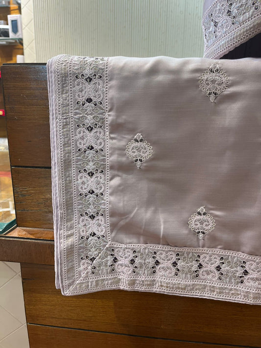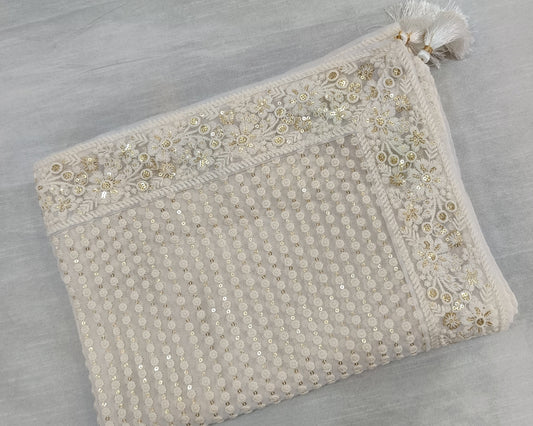 Ivory Shawl with Thread Embroidery – Cotton Silk Fabric for Sherwani or Kurta (50x250 cm)