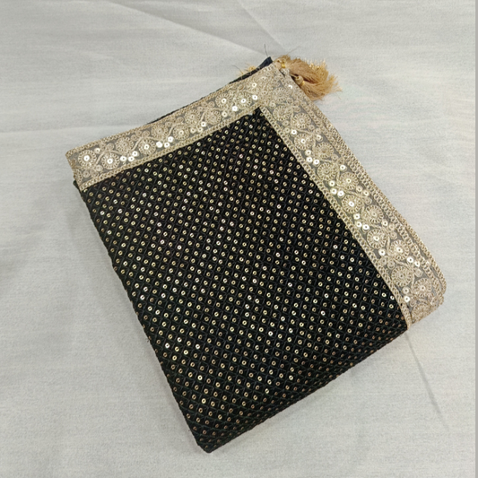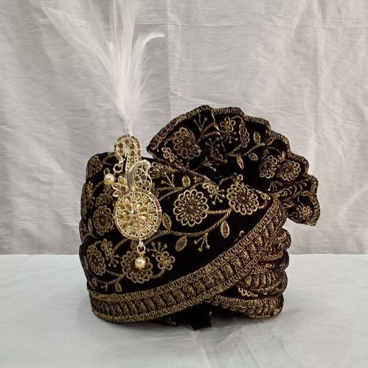Elegant Black Velvet Groom Turban Shawl with Golden Thread Embroidery & Removable Kalangi – Lightweight & Adjustable (Shawl 65x250 cm)