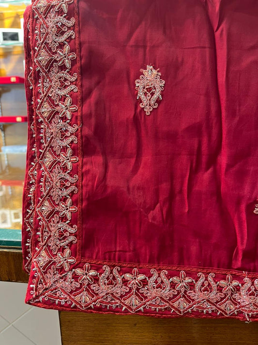 Maroon Wedding Safa Turban & Shawl Set for Groom, Embroidery Border Sherwani Pagri
