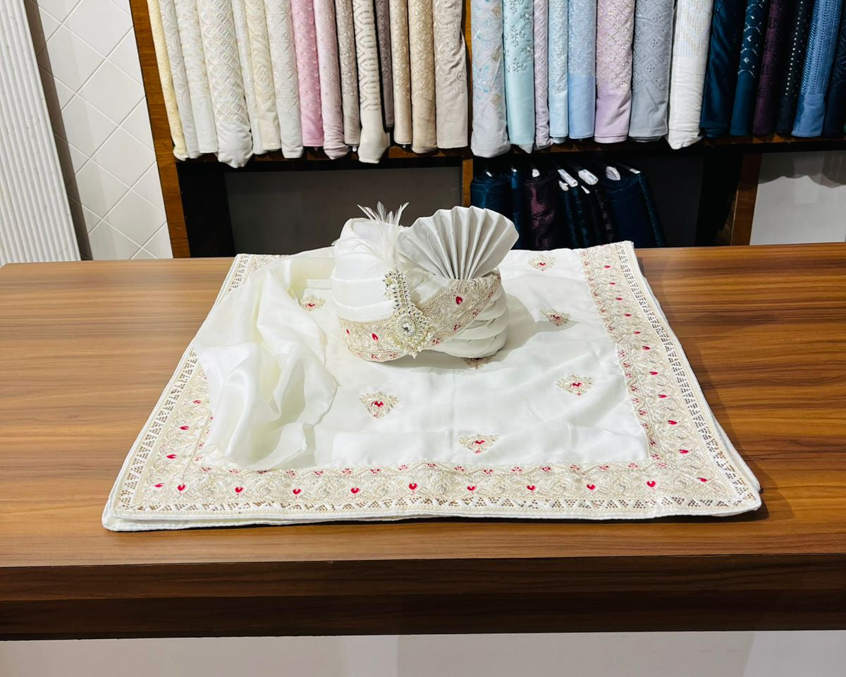 Attractive Indian Wedding Ivory Turban Shawl for Groom