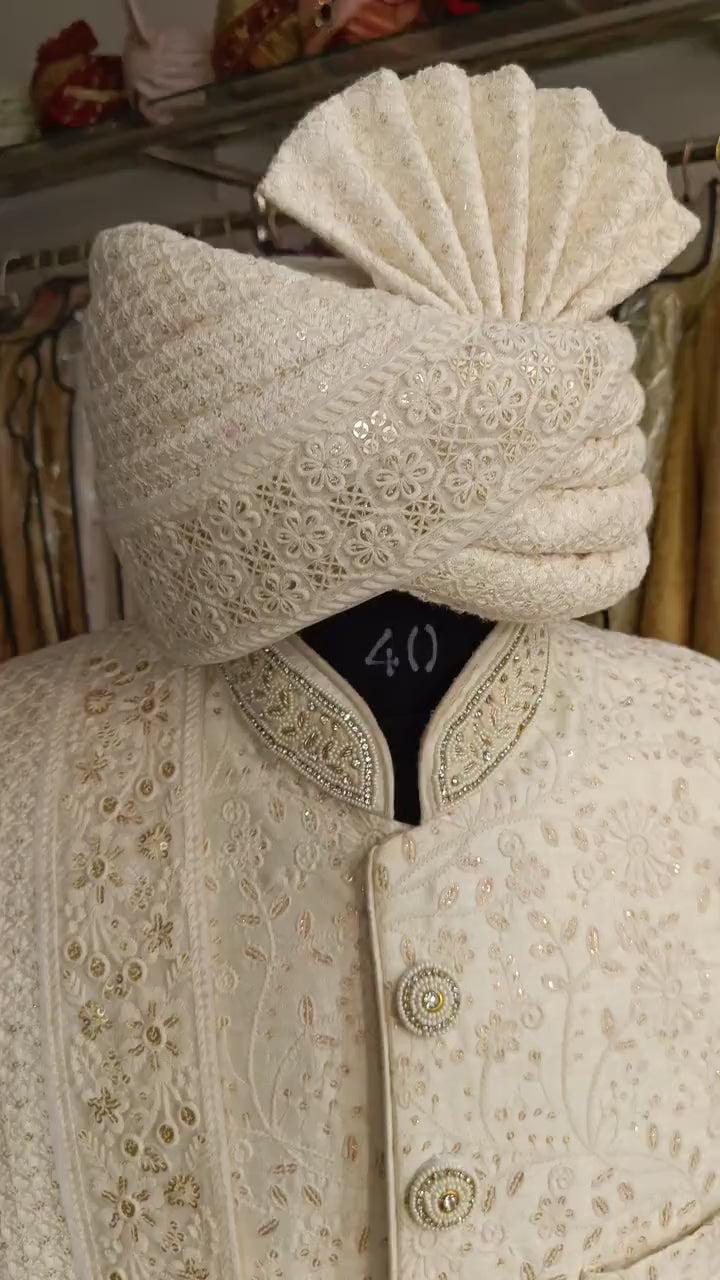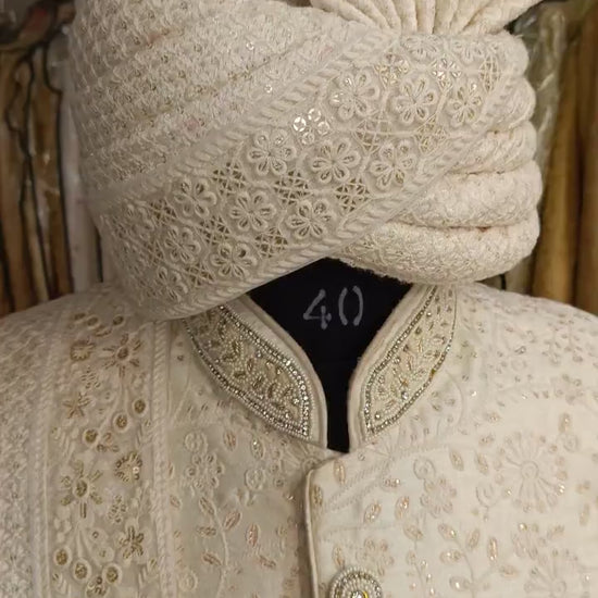 Ivory Embroidered Groom Turban, Lightweight & Adjustable Turban for Sherwani