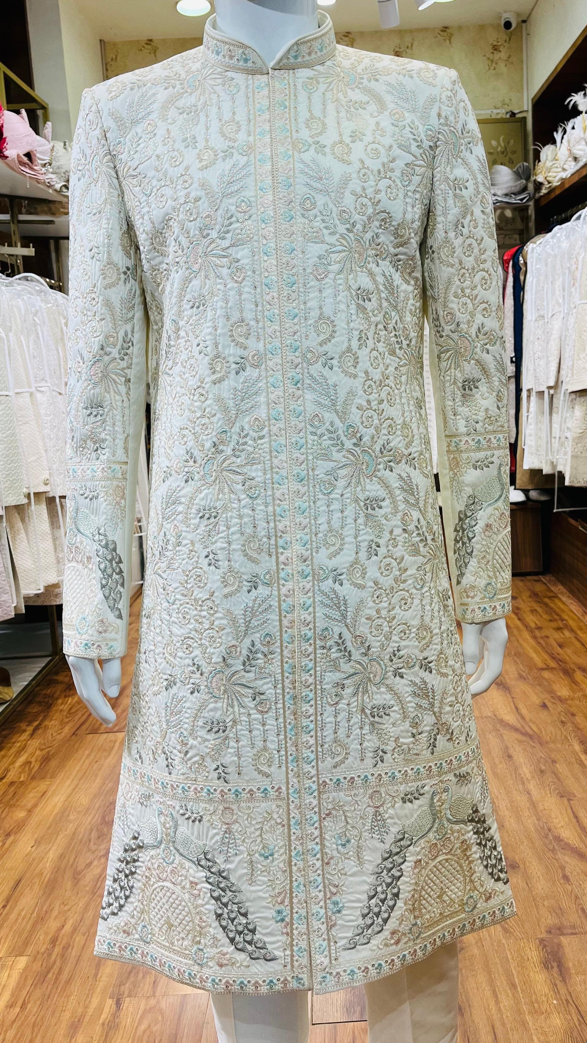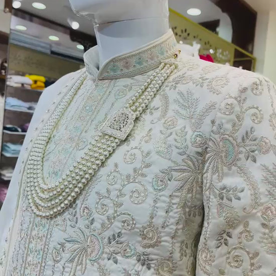 Luxury Ivory Groom Sherwani, Traditional Indian Sherwani Wedding Outfit