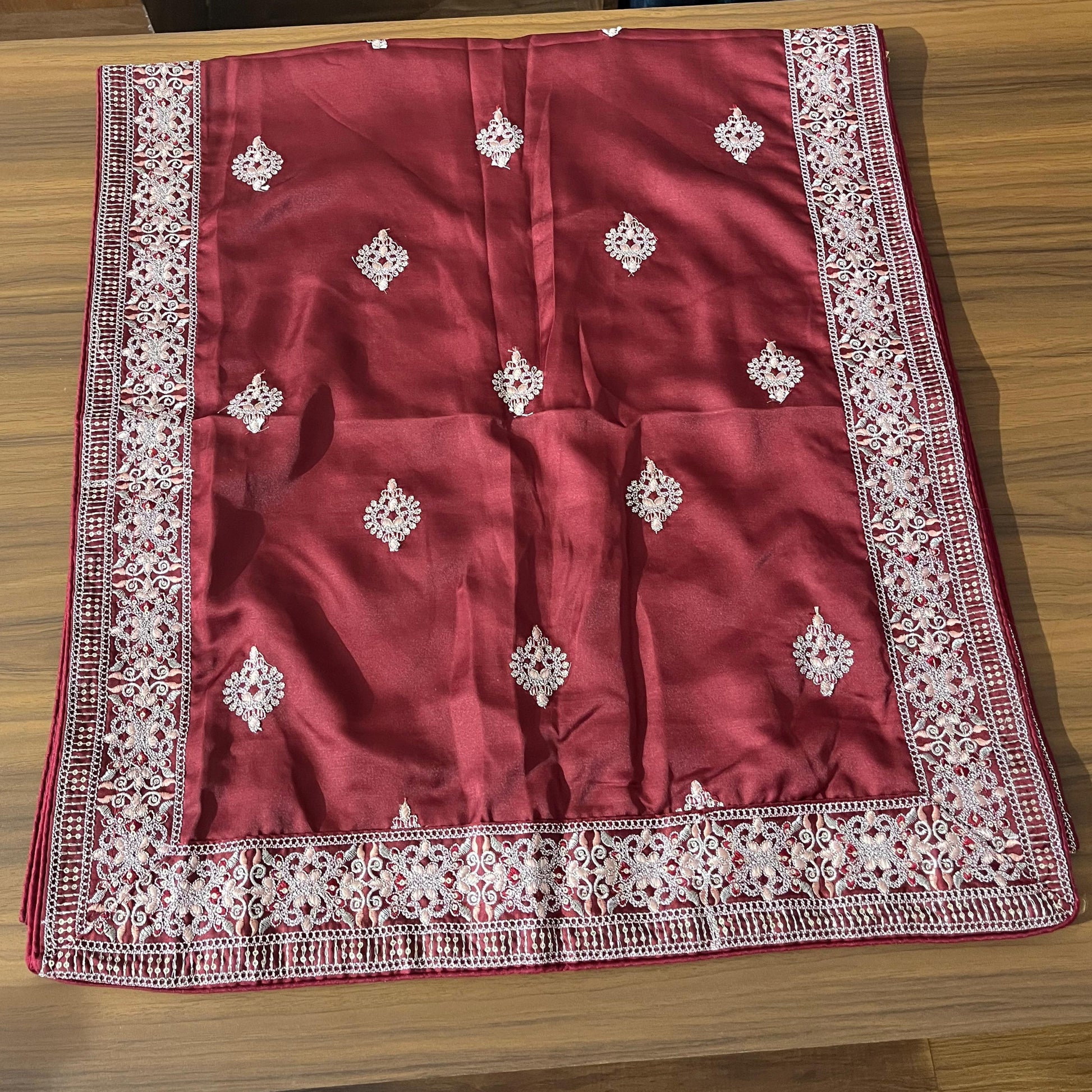Regal Maroon Hue: The rich, deep maroon color symbolizes passion and grandeur, making it a timeless choice for weddings and special ceremonies.