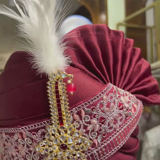 Step into your wedding day with unmatched elegance and confidence. Our exquisite Maroon Silk Wedding Safa Turban and Shawl Set is meticulously crafted for the modern groom who values tradition, comfort, and impeccable style. This isn't just an accessory; it's the crown that completes your majestic Sherwani look.