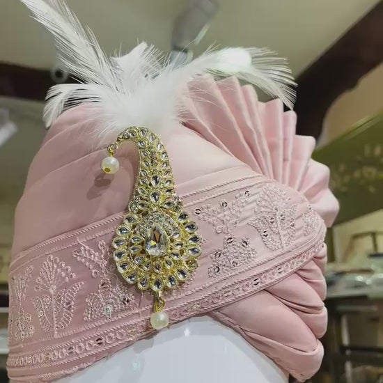 Premium Dusty Rose Indian Groom Safa Turban & Shawl Set for Sherwani, Adjustable Safa Pagri with Embroidery Border