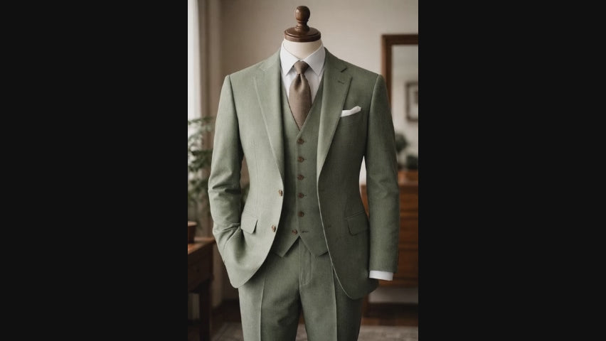 Step into your special day with confidence and sophistication in our Sage Green Premium Tweed Wool Three-Piece Suit—exclusively crafted for the modern groom. Designed to capture the rich, earthy tones of the season, this suit combines classic tailoring with contemporary style, making it the perfect choice for a winter wedding or any formal occasion.