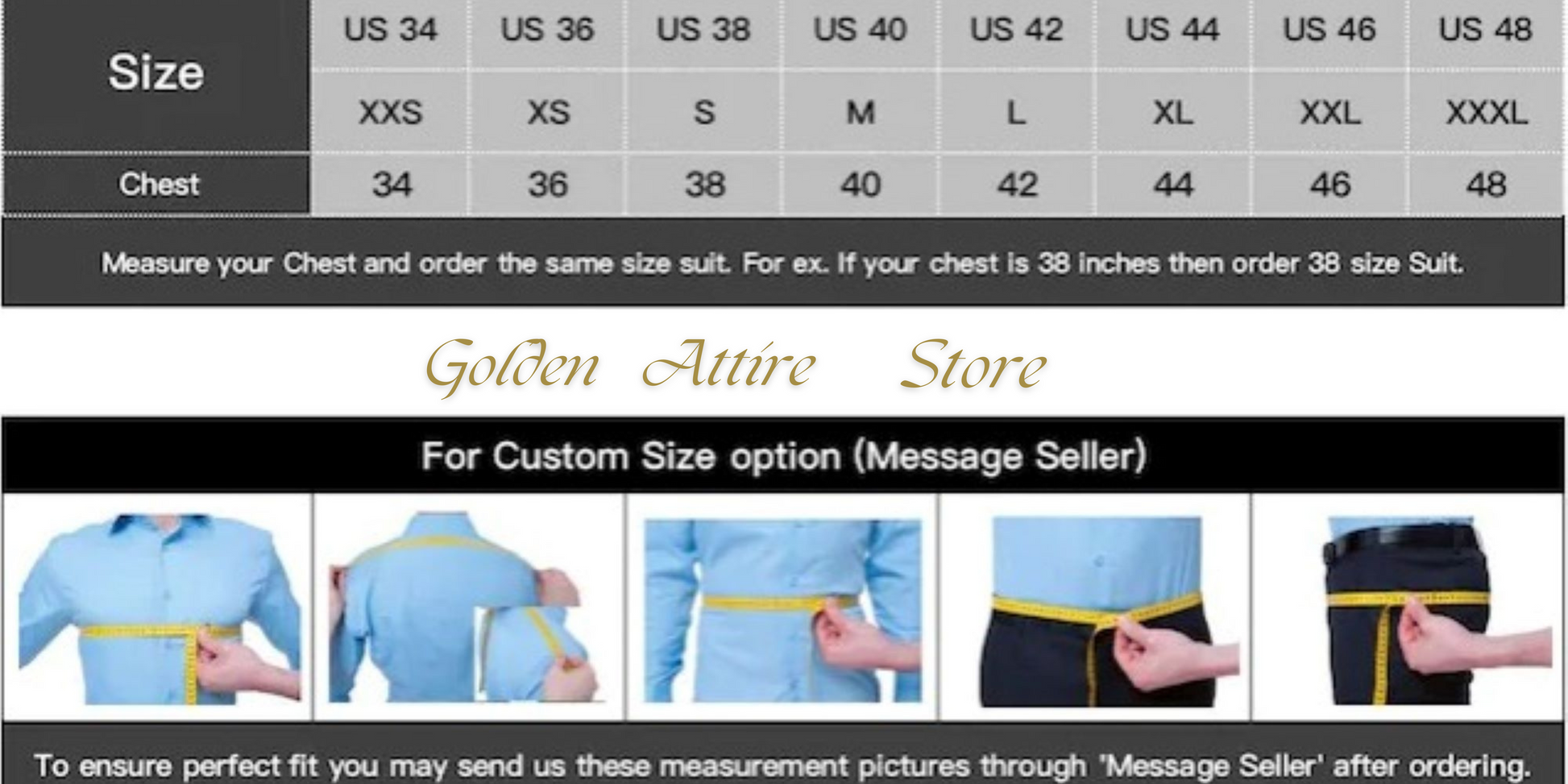 👉 If your chest is 40 inches, select Size 40 Jacket.