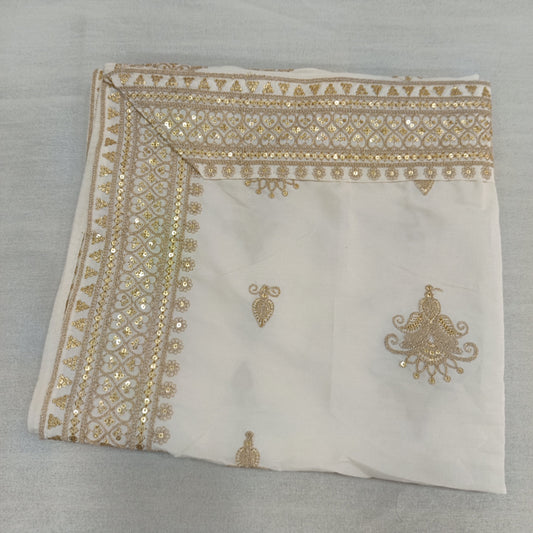 Elegant Ivory Art Silk Groom Shawl with Golden Lace & Thread Embroidery