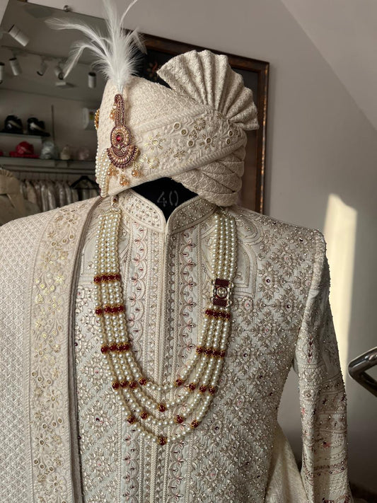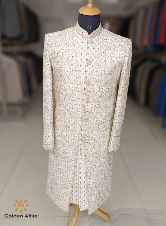 Luxury Ivory Groom Sherwani, Traditional Indian Sherwani Wedding Outfit